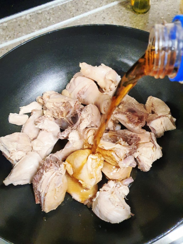 귀찮지만 이러한 과정을 거쳐야만 닭의 잡내를 완전히 제거할 수 있고 찜닭이 나중에 식어도 냄새가 나지 않습니다.
