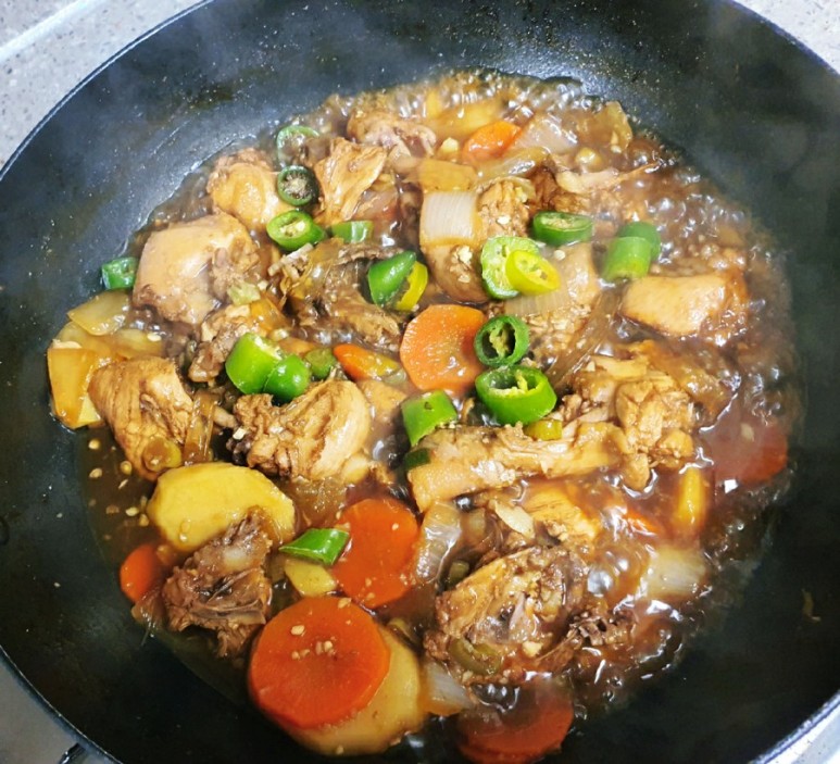 저의 경우, 맵싹 한 찜닭을 좋아하지만 아이들은 매운 것을 먹지 못하기 때문에 1차적으로 완성된 찜닭에서 일부를 덜어 아이들에게 주고 난 후, 남은 찜닭은 입맛에 맞게 땡초를 팍팍 썰어 넣어서 추가 조리를 했습니다.