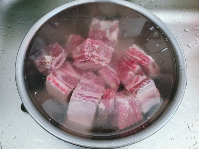 우선적으로 물에 푹 담가서 2시간 정도 핏물을 1차적으로 제거해 줍니다.