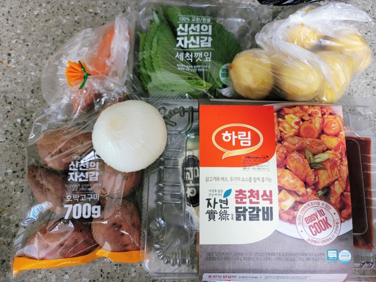 별생각 없이 홈플러스를 방문했는데 닭갈비라는 할인 메뉴를 고르고 보니 여기에 들어가야 할 부재료들까지 엉겁결에 구매해서 집으로 돌아왔습니다.