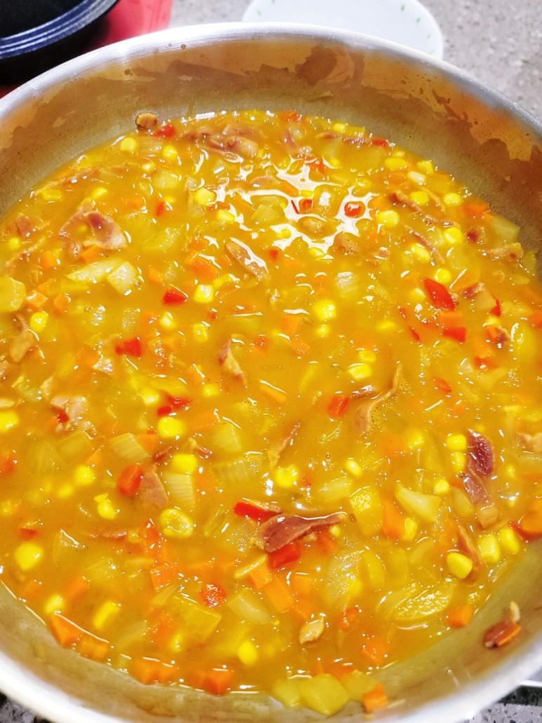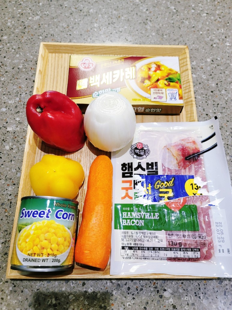 그리고 저의 비장의 무기인 베이컨과 옥수수 콘도 반통을 함께 준비했습니다.