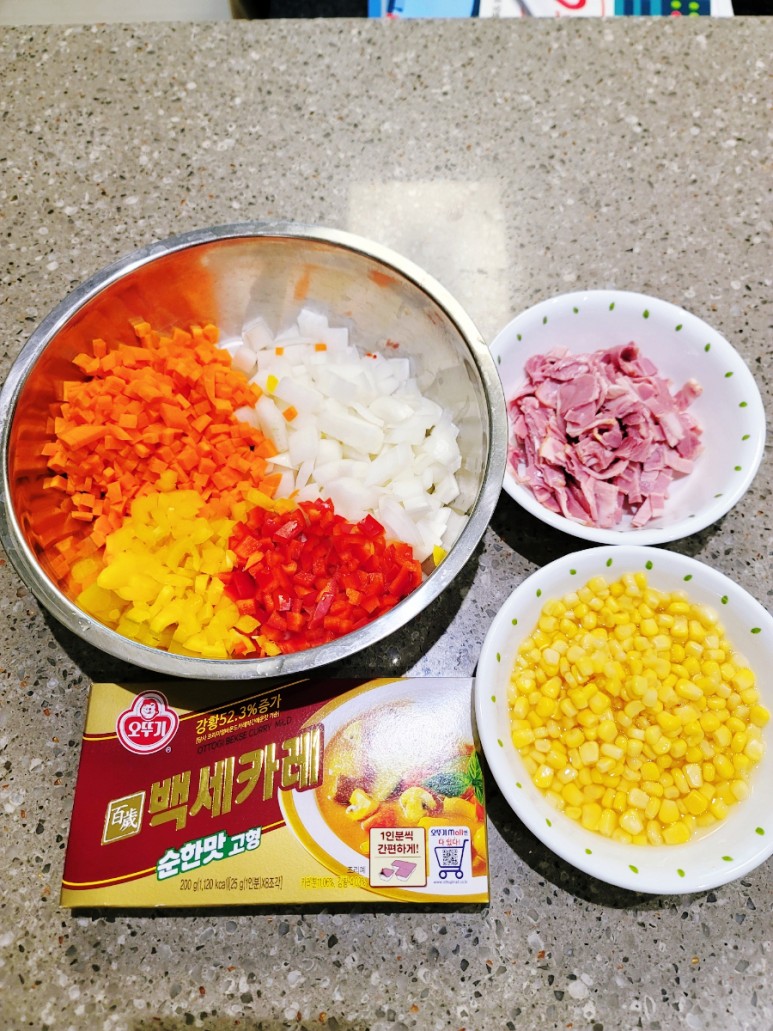 평소 주중 한 번 정도는 카레를 이용해 저녁을 해결하는 아이들에게 빘진 채소 가격을 보정하기 위해 특별히 오늘은 상대적으로 저렴한 고형 카레를 재료로 준비했습니다.