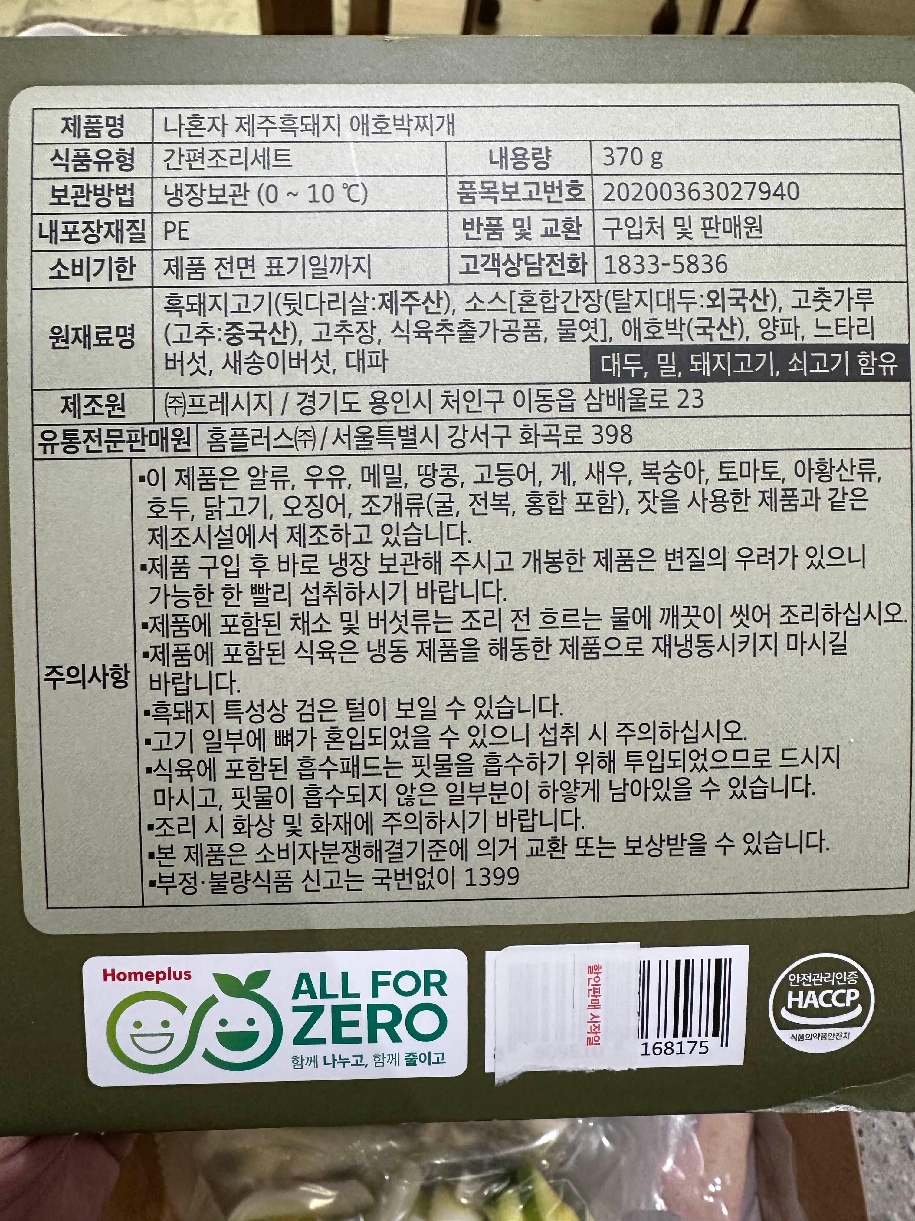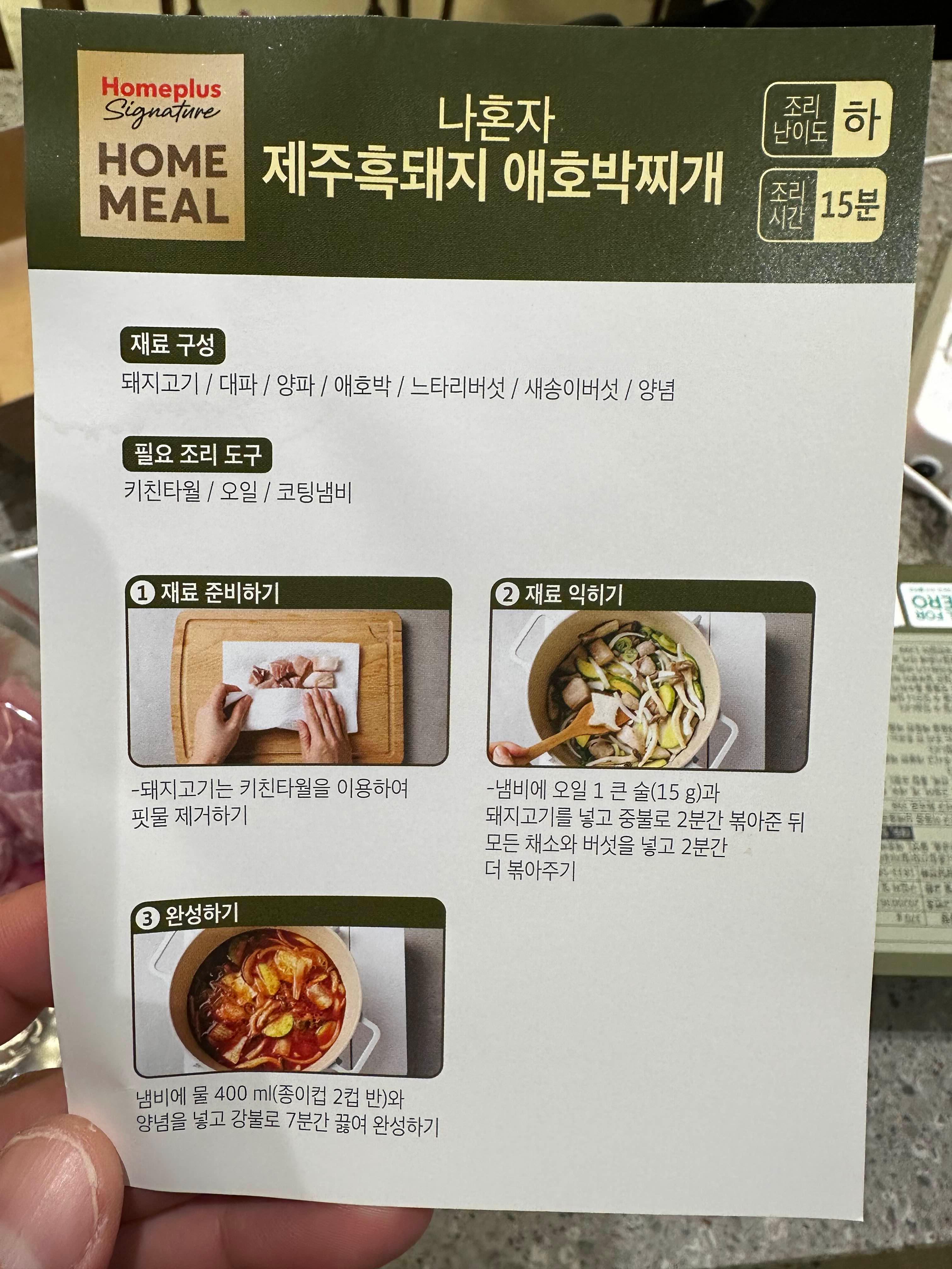 간단하지만 제대로 된 찌개 한 끼가 필요할 때 홈플러스 홈밀 나혼자 제주흑돼지 애호박찌개,